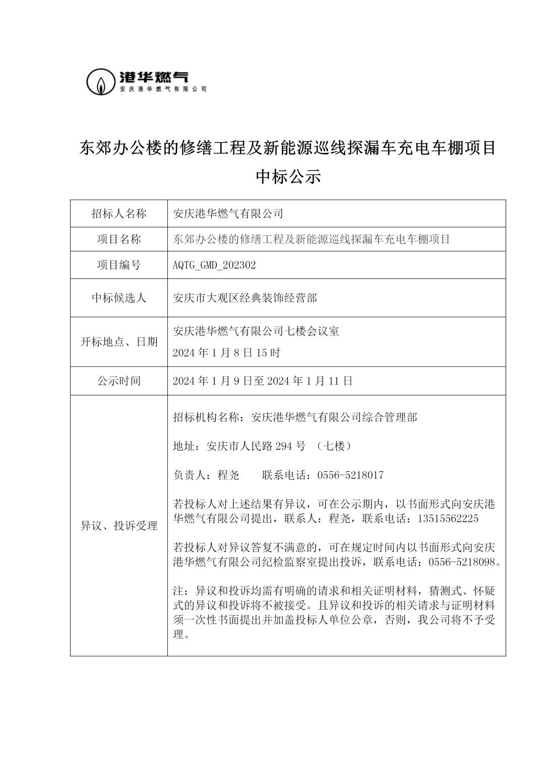 東郊辦公樓的修繕工程及新能源巡線探漏車充電車棚項(xiàng)目中標(biāo)公示