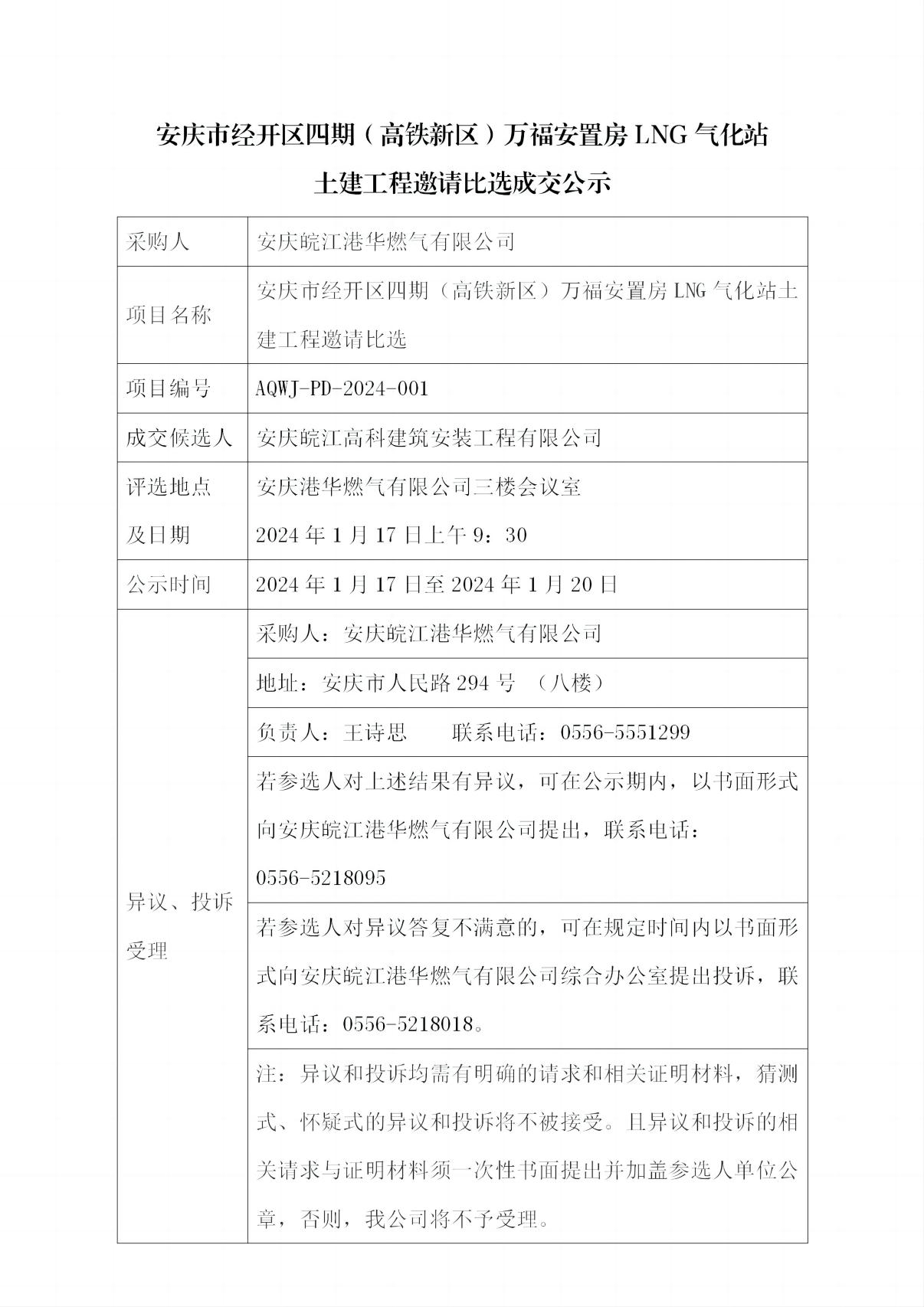 安慶市經(jīng)開區(qū)四期(高鐵新區(qū))萬福安置房LNG氣化站 土建工程邀請(qǐng)比選成交公示