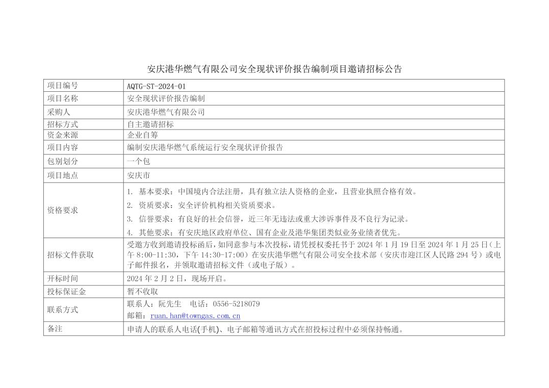 安慶港華安全現(xiàn)狀評(píng)價(jià)報(bào)告編制項(xiàng)目邀請(qǐng)招標(biāo)公告