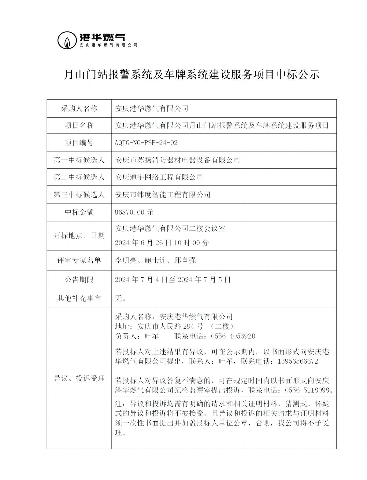 月山門(mén)站報(bào)警系統(tǒng)及車(chē)牌系統(tǒng)建設(shè)服務(wù)項(xiàng)目中標(biāo)公示